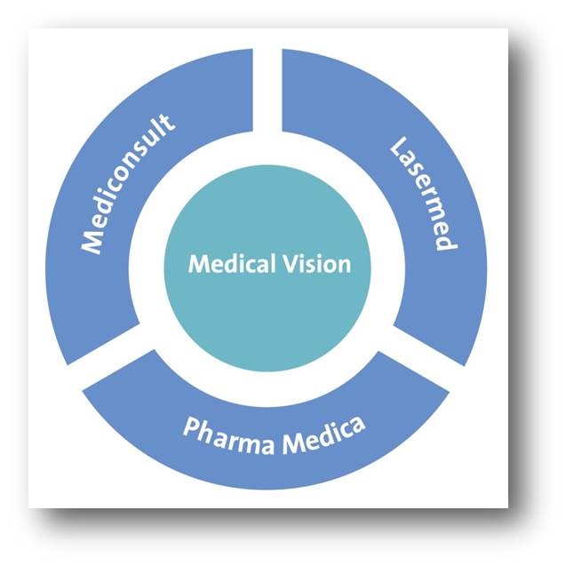Der Weg von der Vision bis zur Realisierung verläuft selten geradlinig. Umso entscheidender ist ein stabiles Netzwerk mit qualifizierten Vertrauenspartnern in Verbindung mit Effizienz, Dynamik, Konstanz und Weitblick. Die Medical Vision Group ist als Dienstleistungs- Firmengruppe in der Medizinalbranche tätig. Unsere Palette umfasst u.a. bedürfnis- und kostenoptimierte Angebote, ausgereifte technische Leistungen, professionelles Outsourcing und nicht zuletzt die Trendforschung im Gesundheitsmarkt.
